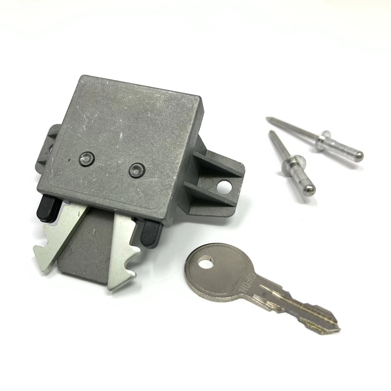 Slam lock mechanism including single key and pair of rivets for Thule Ocean 80 roof box.