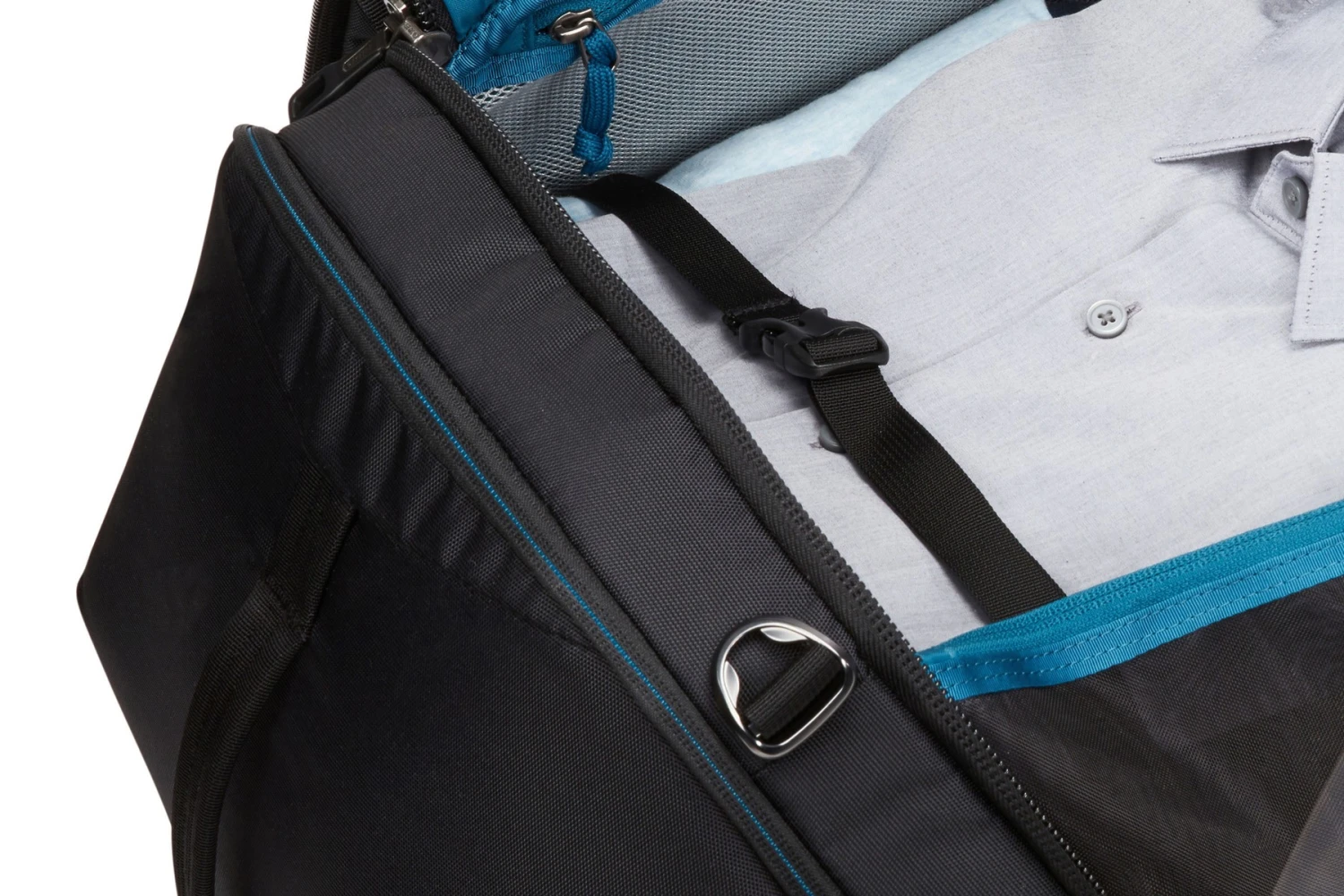 - Large gusseted side pockets for packing shoes and bulky items